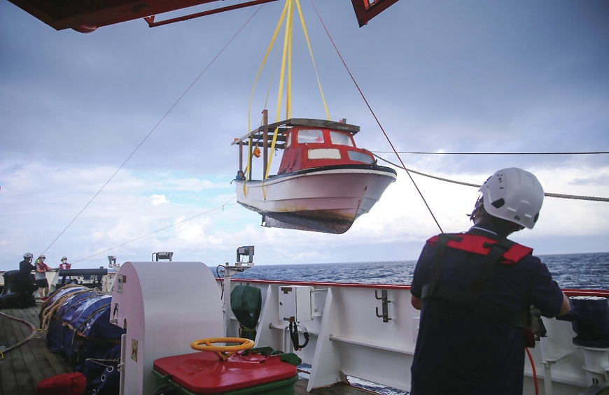 北京时间10日10时55分许,“雪龙2”号航行至巴布亚新几内亚附近海域,驾驶台值班员发现一艘小船上有人不停挥舞衣服发出求救信号。“雪龙2”号立即采取减速停船措施,积极实施救援。13时40分许,“雪龙2”号左舷靠上求救船只,并将其固定至舷边。通过沟通获悉,船上4人均为巴布亚新几内亚渔民,因燃油和蓄电池电量耗尽,船只失去动力且无法对外联络,已漂泊近9小时。