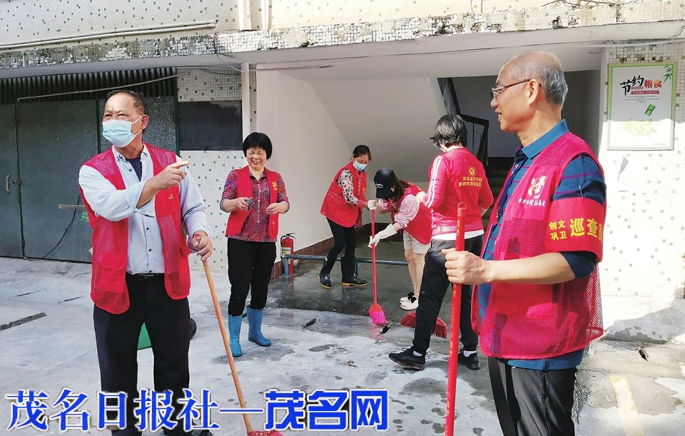 方兴社区居民自发组织志愿者队伍,义务参加清洁家园活动。茂名日报社全媒体记者岑稳摄