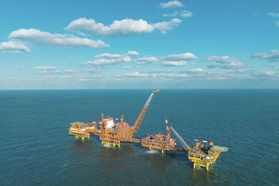 这是11月14日拍摄的渤中19-6气田(无人机照片)。 中国海油14日宣布,我国渤海首个千亿方大气田——渤中19-6气田Ⅰ期开发项目成功投产,标志着我国海上深层复杂潜山油气藏开发迈入新阶段。 新华社发(杜鹏辉摄)