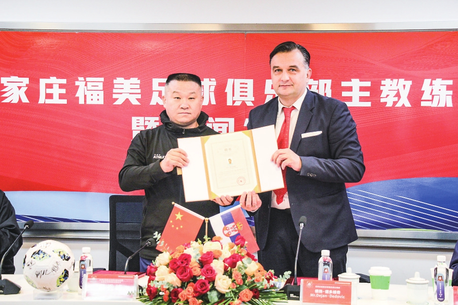新华社石家庄11月14日电(记者杨帆、赵鹏昊)14日,石家庄福美足球俱乐部举行主教练签约仪式及新闻发布会,宣布聘请塞尔维亚籍知名五人制足球教练德扬·德多维奇为球队主教练。