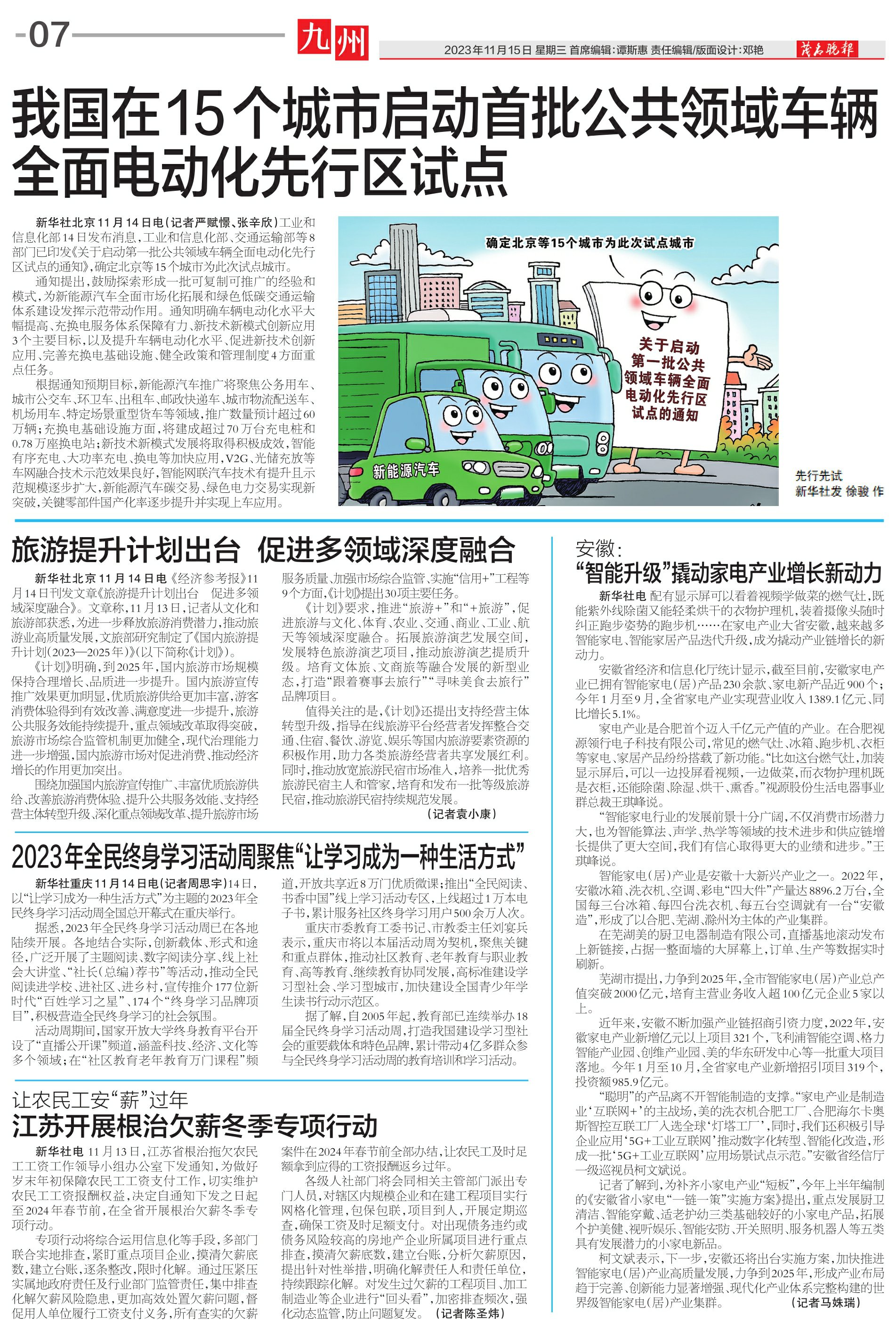 我国在15个城市启动首批公共领域车辆全面电动化先行区试点