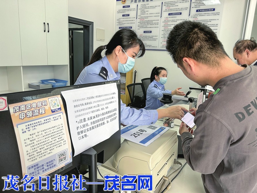 西粤派出所民警在为群众办理户籍业务。茂名晚报记者赖碧怡摄