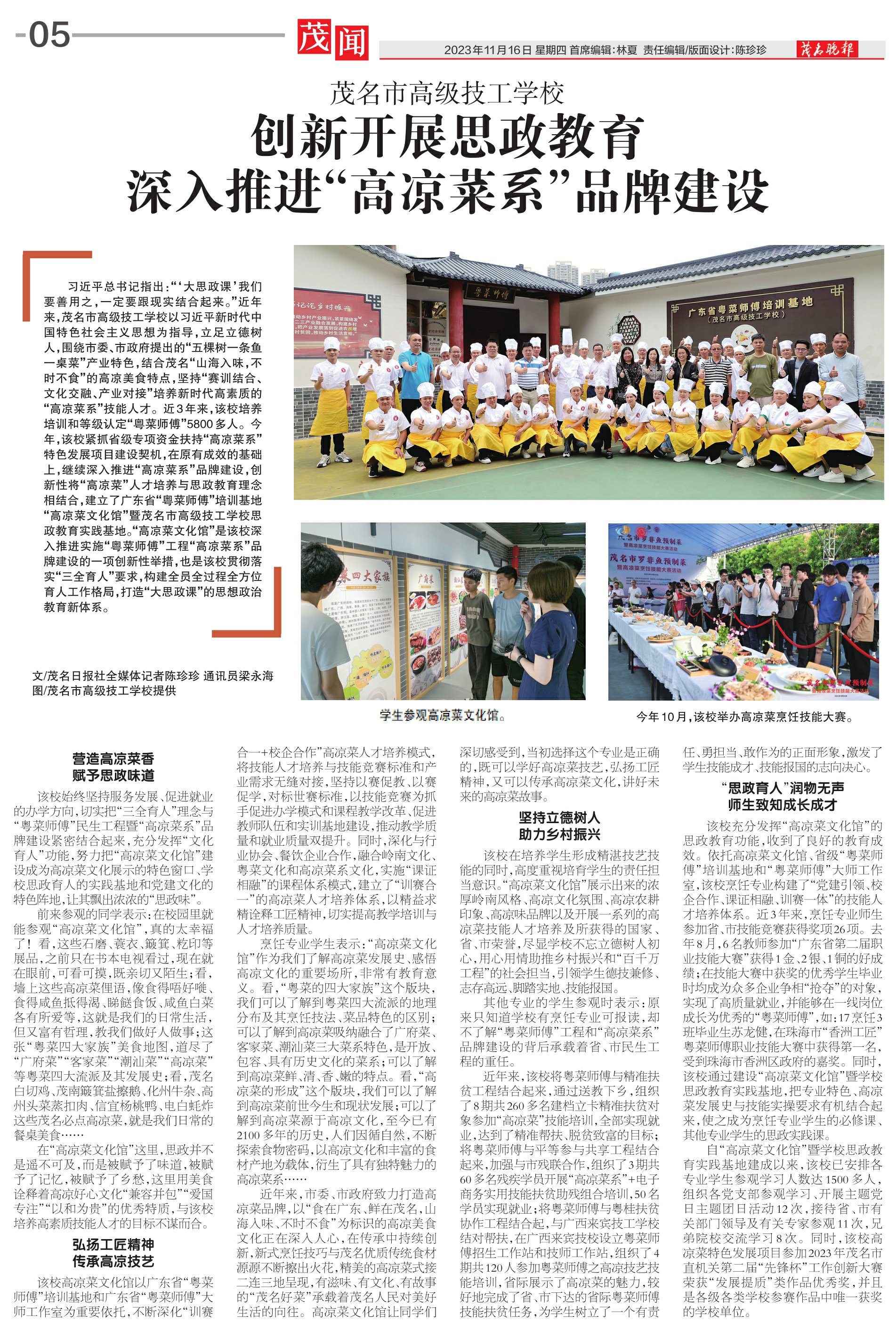 创新开展思政教育深入推进“高凉菜系”品牌建设