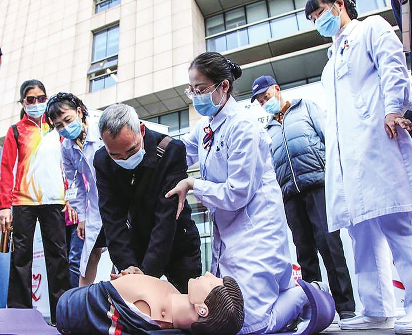 部分医院开展义诊活动,指导市民进行心肺复苏演练。新华社发