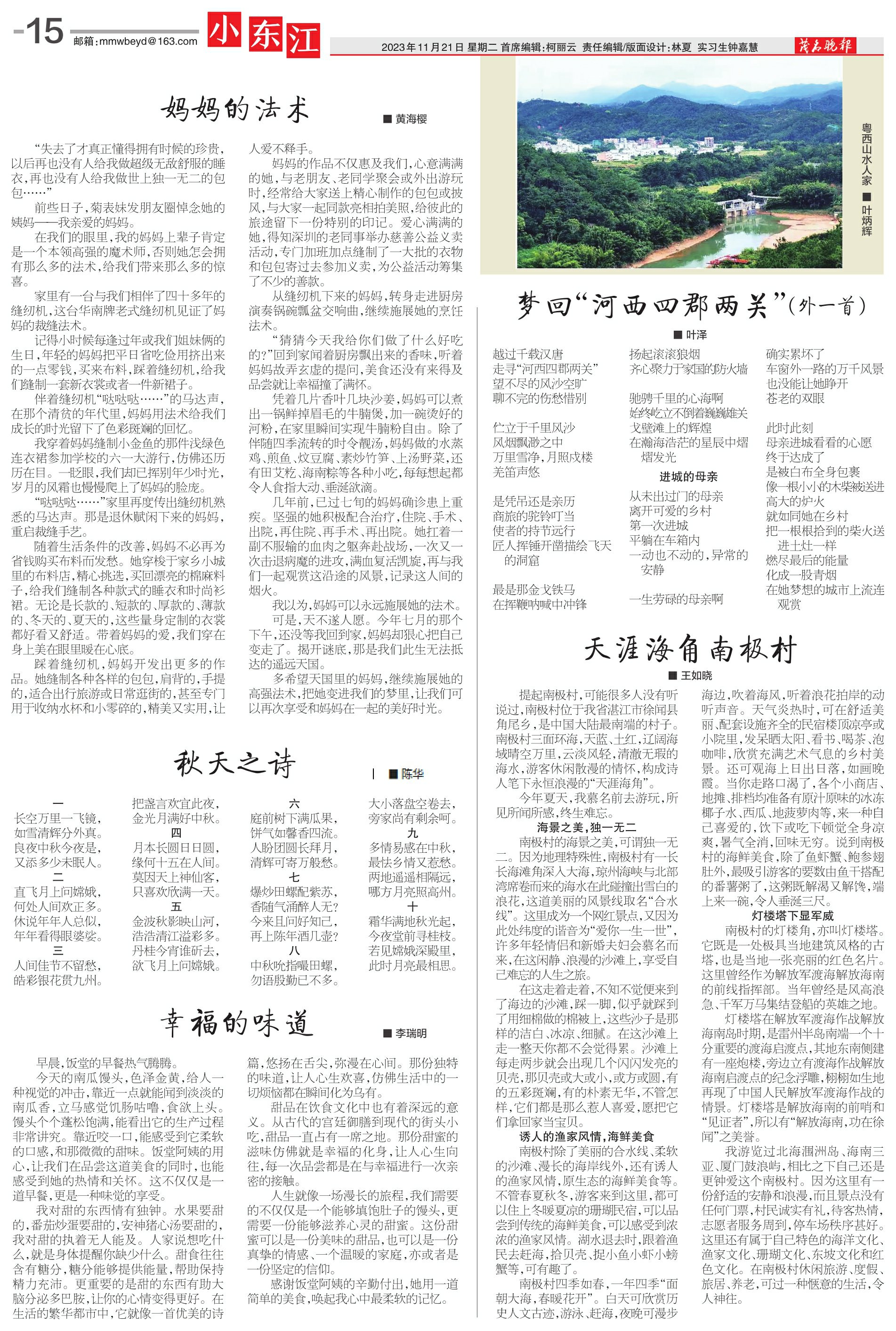 我游览过北海涠洲岛、海南三亚、厦门鼓浪屿,相比之下自己还是更钟爱这个南极村。因为这里有一份舒适的安静和浪漫,而且景点没有任何门票,村民诚实有礼,待客热情,志愿者服务周到,停车场秩序甚好。这里还有属于自己特色的海洋文化、渔家文化、珊瑚文化、东坡文化和红色文化。在南极村休闲旅游、度假、旅居、养老,可过一种惬意的生活,令人神往。