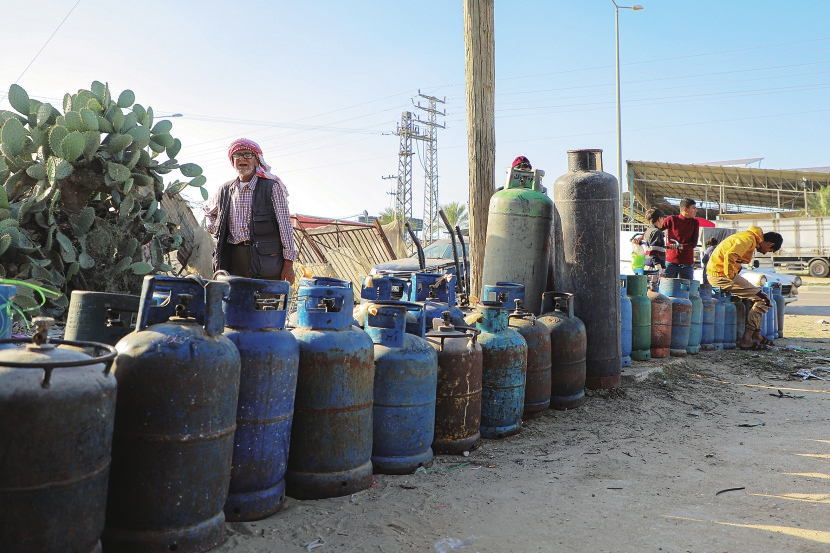 ▲11月24日,在加沙地带南部城市拉法,人们排队等待充天然气。新华社发(里泽克·阿卜杜勒贾瓦德摄)