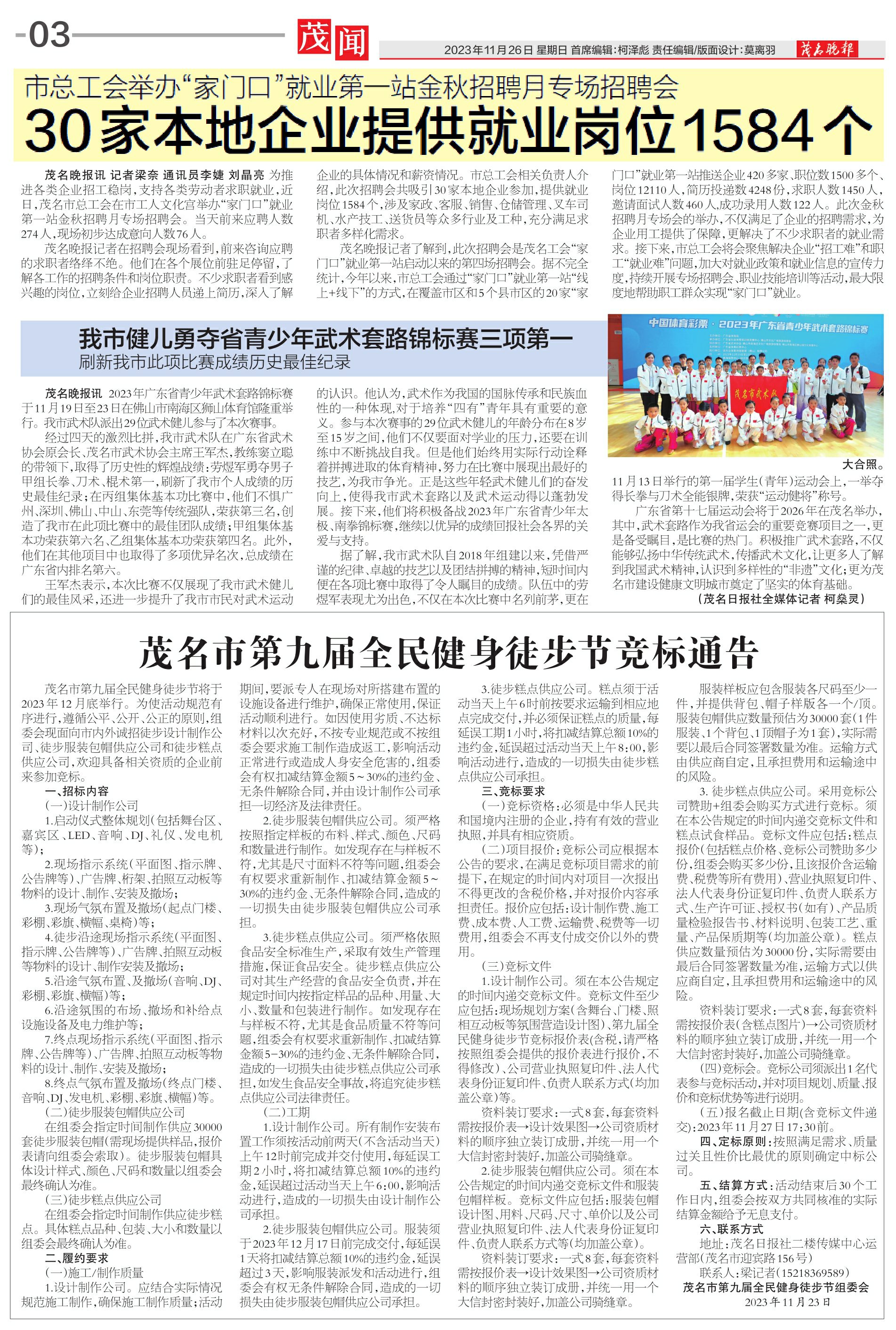 茂名市第九届全民健身徒步节竞标通告