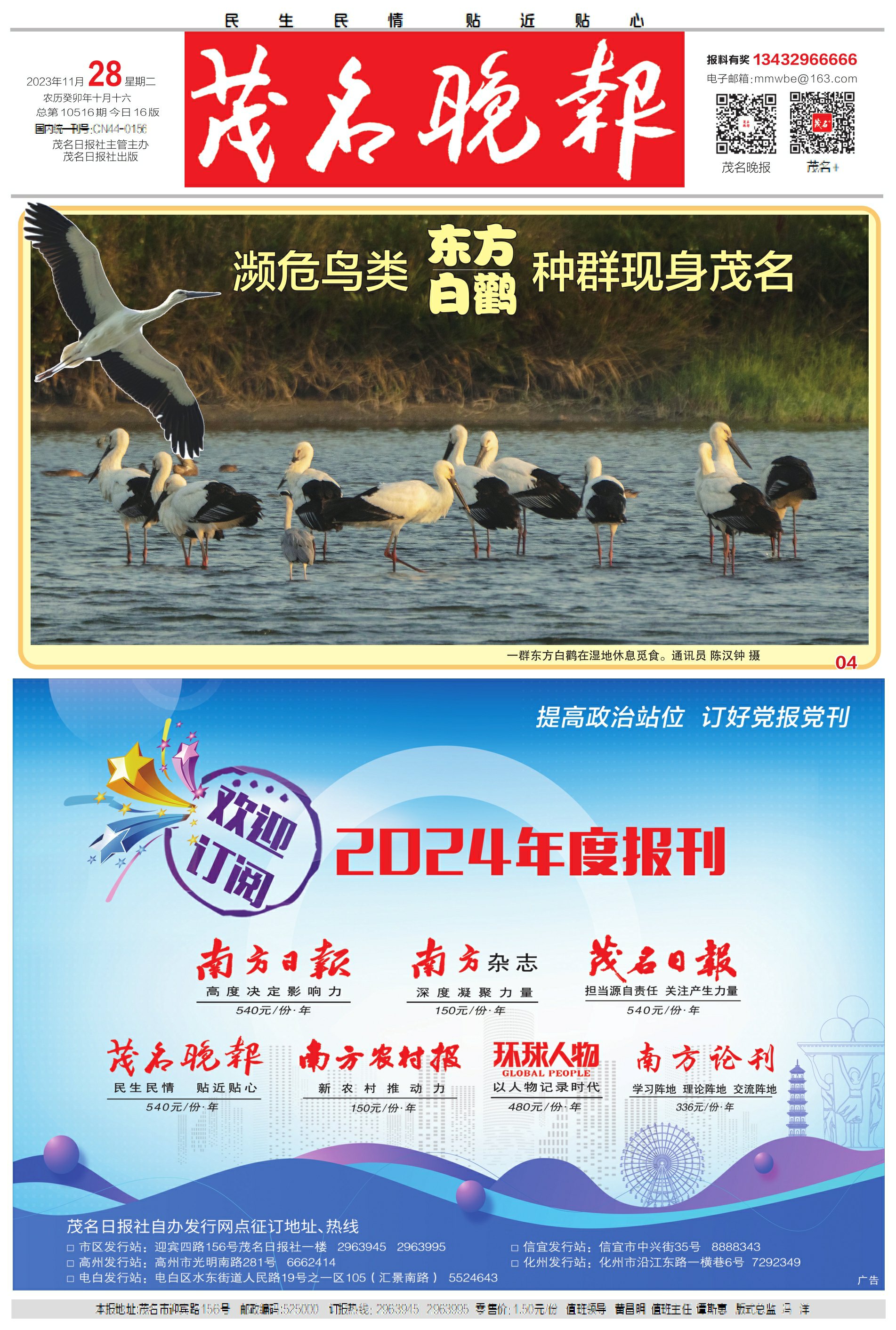 濒危鸟类东方白鹳种群现身茂名