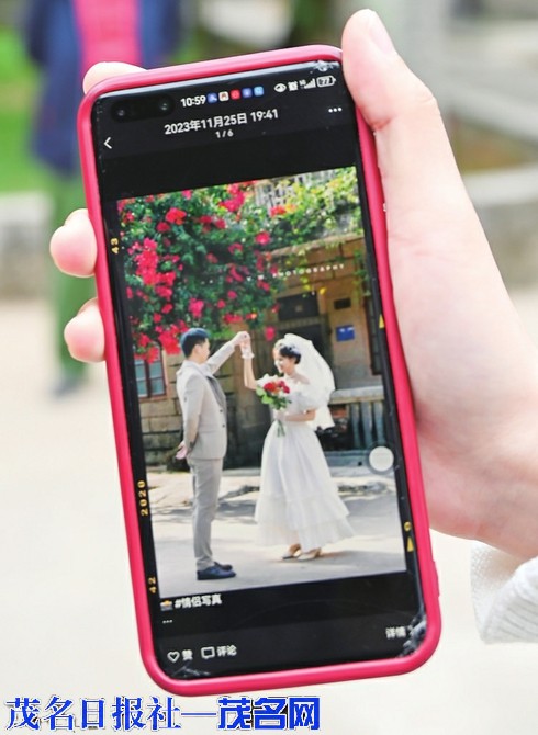 网友在手机展示11月底新人前来拍摄的婚纱照。