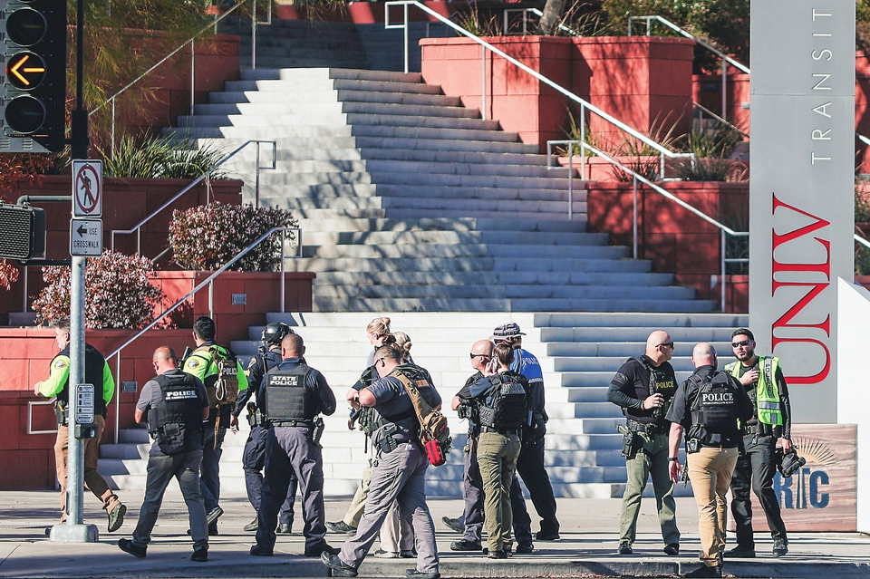 美国拉斯维加斯警方6日说,内华达大学拉斯维加斯分校当日发生一起枪击事件,造成至少3人死亡、1人重伤。枪手已死亡。 新华社/美联