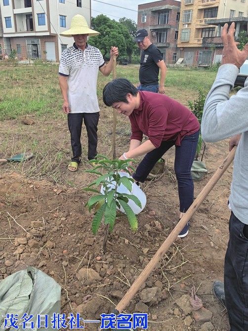 茂名晚报讯日前,化州市东山街道在上坡村委会谭塘村开展植树增绿活动,干部群众齐心种下一株株果树,给庭院添加一份甜蜜,为村庄增加一片新绿,合力共建绿美东山。