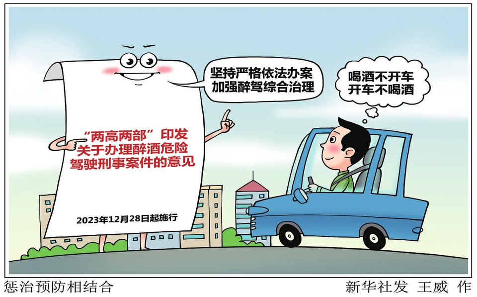 新华社北京12月18日电 12月18日,最高人民法院、最高人民检察院、公安部、司法部联合发布《关于办理醉酒危险驾驶刑事案件的意见》(以下简称《意见》)。《意见》将于2023年12月28日起施行。