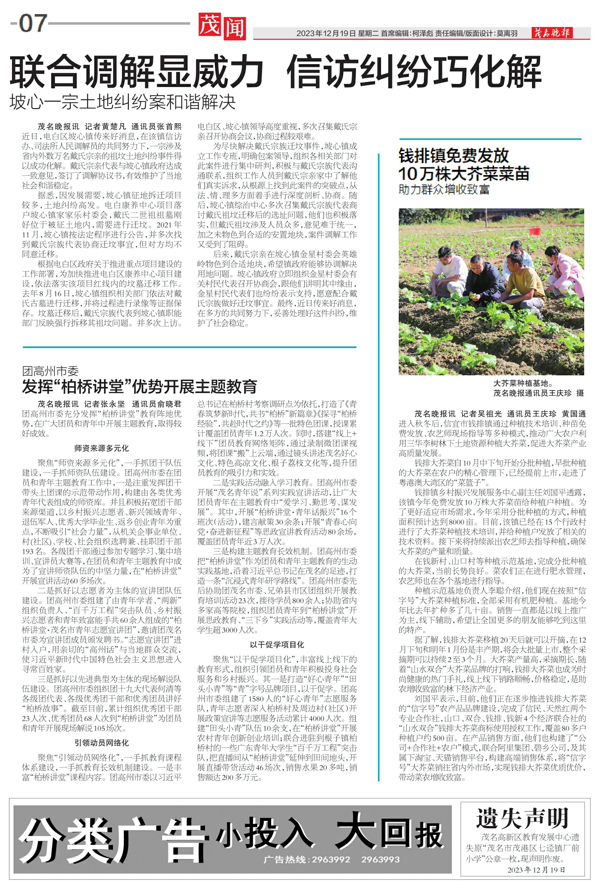 团高州市委发挥“柏桥讲堂”优势开展主题教育