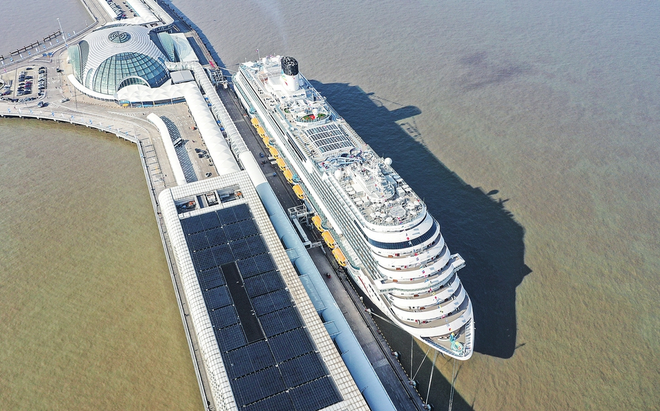 1月1日,“爱达·魔都号”停靠在上海吴淞口国际邮轮港(无人机照片)。