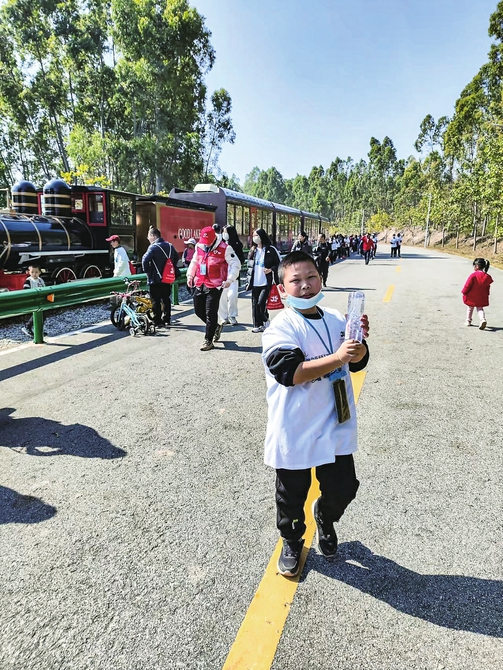 早上,天刚亮,路上的行人还不是很多,但露天矿博物馆门前广场却人头涌涌、热闹非凡了。原来这里将举行一场盛大的活动——“助力百千万工程,我们一起去趁墟”茂名市第九届全民健身徒步节活动。我们将从这里出发徒步13千米到达油城墟。我怀着无比激动的心情也参与到其中去了。