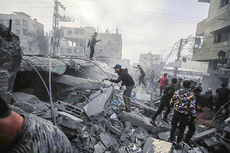 2023年12月20日,在加沙地带南部城市拉法,人们在以军空袭后开展救援。新华社发(亚西尔·库迪摄)