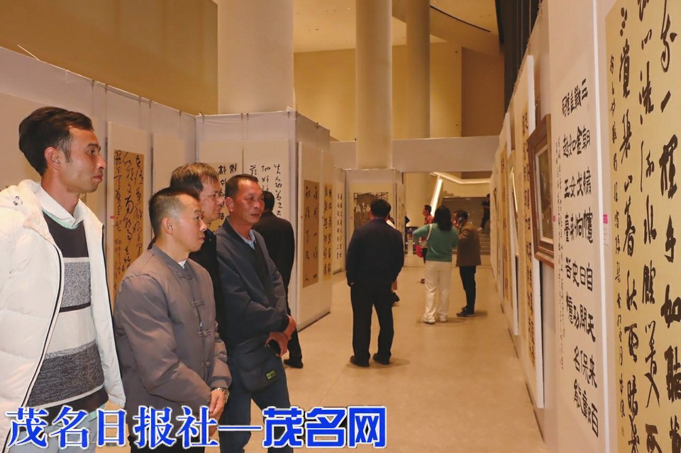 市民欣赏书画作品。 茂名日报社全媒体记者吴云杰摄