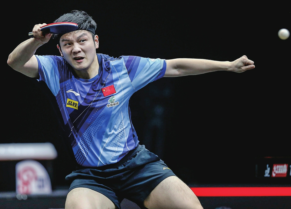 1月4日,樊振东在比赛中回球。新华社记者王东震摄