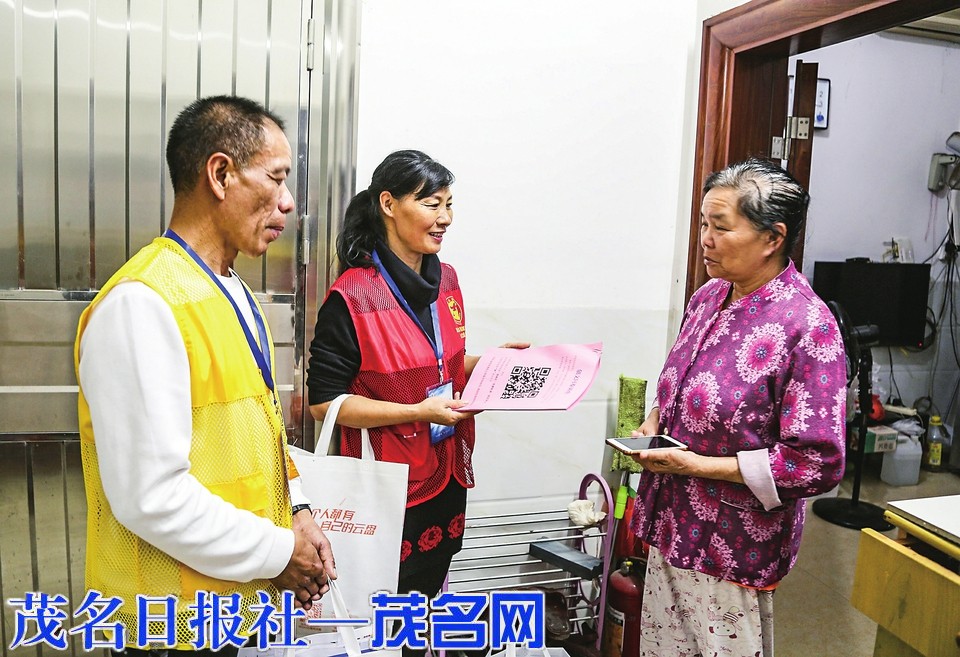 志愿者向居民进行创文问卷调查。茂名日报社全媒体记者岑稳摄