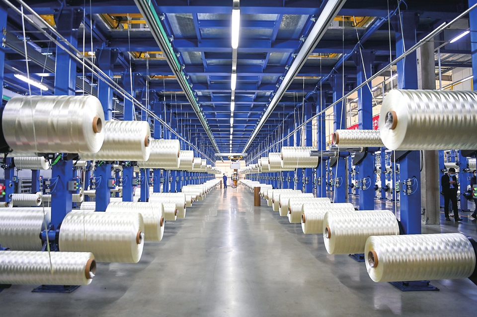 工人在吉林化纤集团国兴碳纤维公司生产车间整理碳纤维原丝(资料图片)。 新华社记者颜麟蕴摄