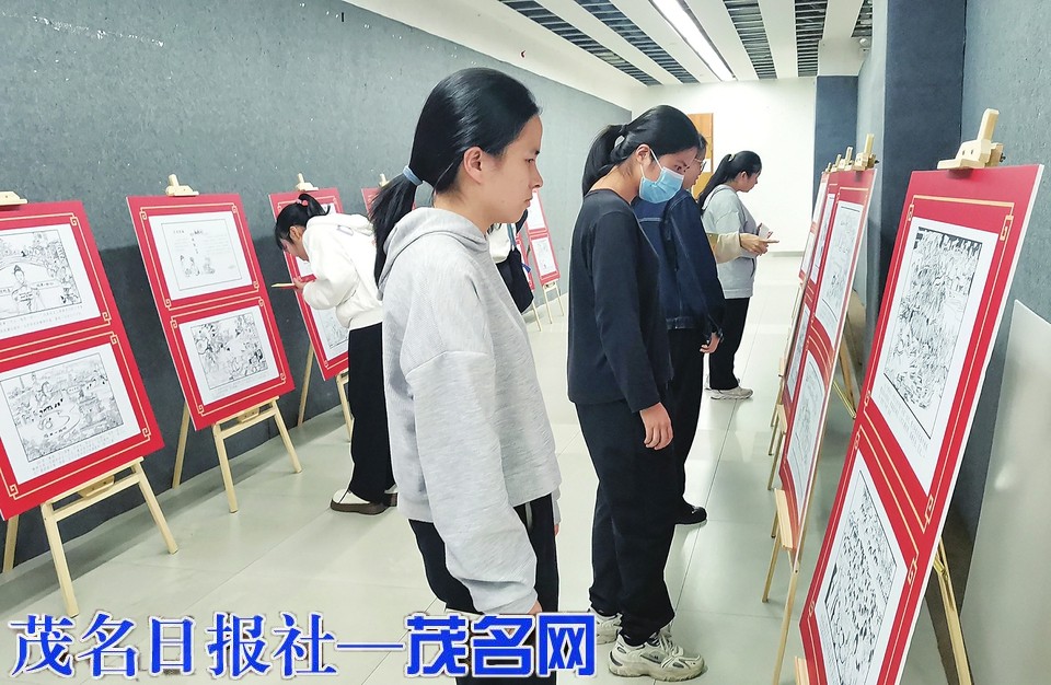 市民在观看《冼夫人好心精神》专题连环画展。茂名日报社全媒体记者岑稳摄