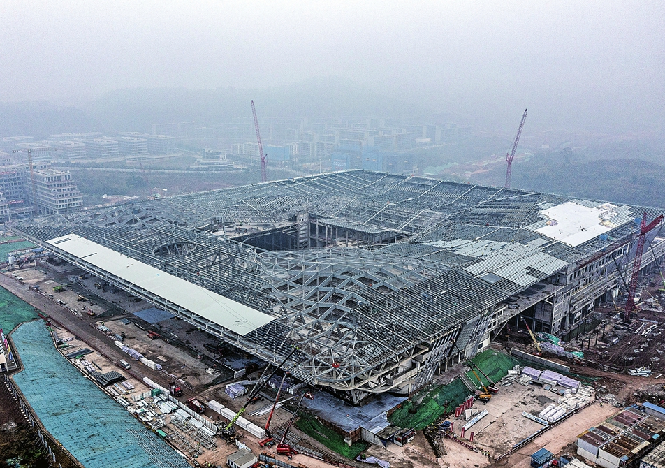 1月10日拍摄的西部(重庆)科学城科学会堂项目施工现场(无人机照片)。新华社记者刘潺摄