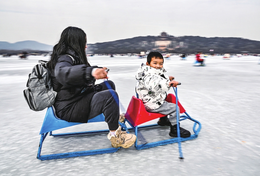 1月1日,游客在颐和园冰场玩冰车。新华社记者陈晔华摄