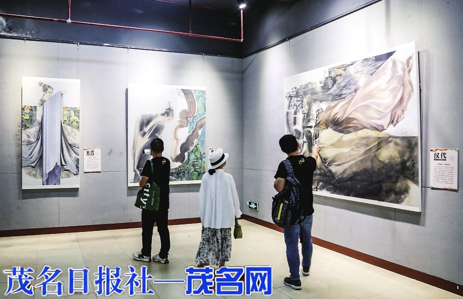 市民在博物馆参观“与丝绸同行”画展。