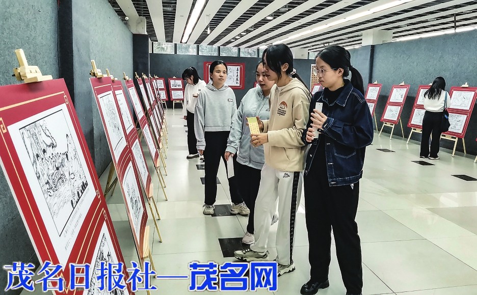 市民在观看《冼夫人好心精神》专题连环画展。