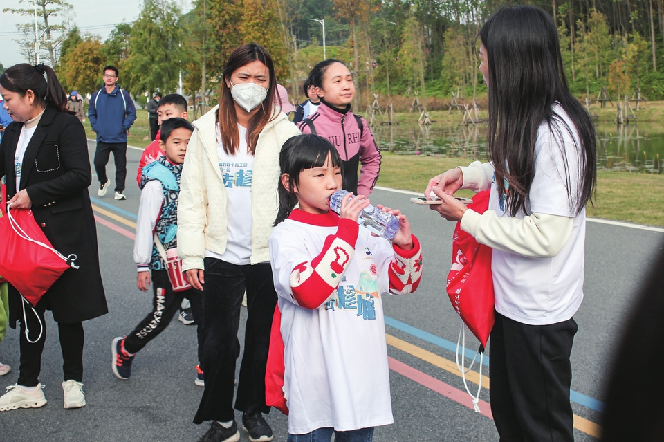百岁山天然矿泉水成了徒步节无比亮丽的风景线。茂名晚报记者张富摄