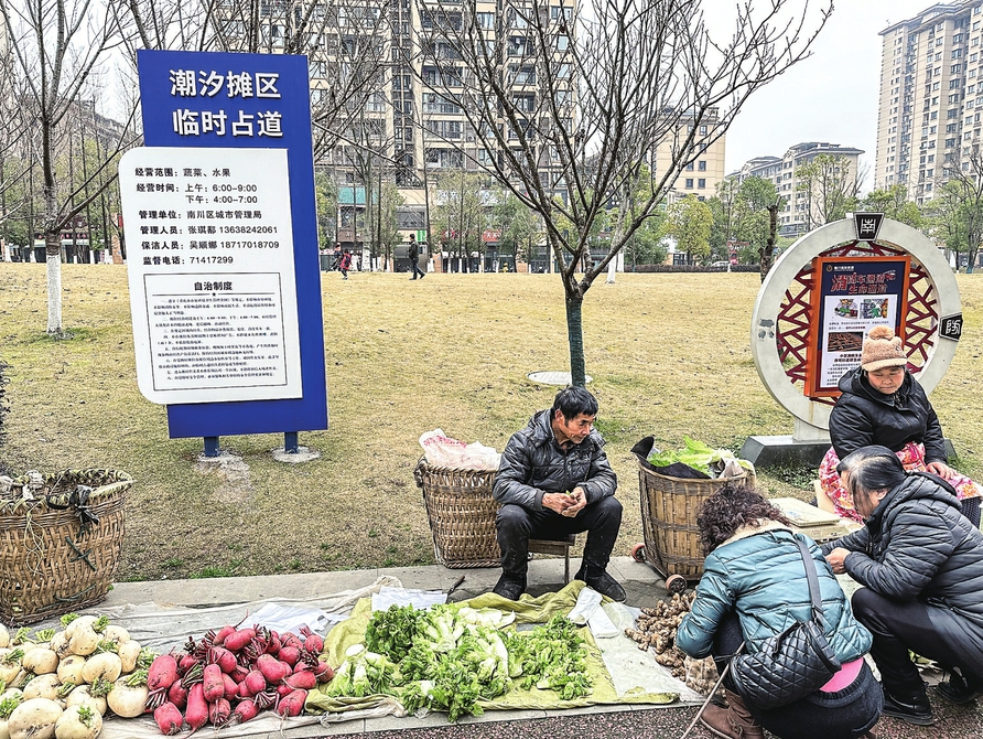 去年4月以来,南川区探索在小区周边等区域设立“潮汐摊区”,目前已设置摊区31处、摊位2100余个,引导瓜果农、流动菜农、经营摊贩免费入位规范经营,实行“摊位+摊主自治”模式,早中晚定时、规范定点、统一管理。“这让居民在家门口就能吃上新鲜瓜果蔬菜,也有助于规范流动摊贩管理。”南川区城市管理局局长姚涛说。