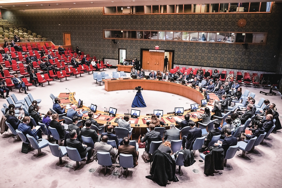 1月3日,安理会关于红海局势紧急公开会现场。新华社发(联合国供图/曼努埃尔·埃利亚斯摄)