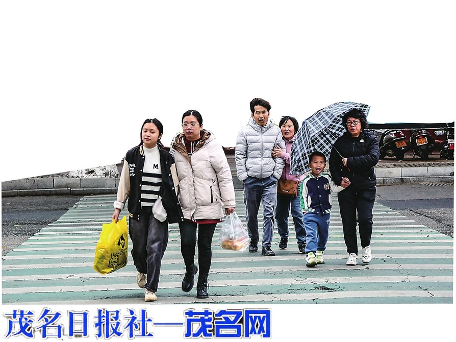 昨日,受强冷空气影响,市区气温骤降,市民厚衣出行。 茂名日报社全媒体记者李颜东 摄