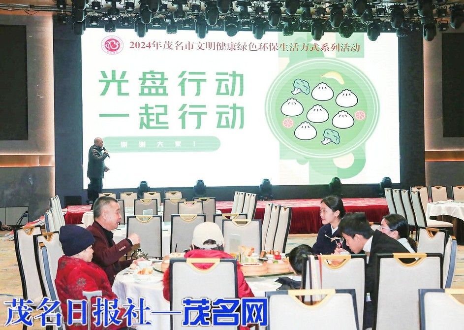 茂名晚报讯记者张丁文为培育文明好风尚,营造良好社会氛围,弘扬勤俭节约的优良传统,推行落实文明健康生活方式,引导广大市民树立文明节约的用餐理念,杜绝餐饮铺张浪费,1月29日上午,由茂名市文明办、茂名市市场监督管理局主办的2024年茂名市文明健康绿色环保生活方式系列活动在茂名海龙阁酒楼举行。活动主题为“光盘行动我先行引领健康新‘食尚’”,活动倡导市民自觉践行“光盘行动”,杜绝“舌尖上的浪费”。