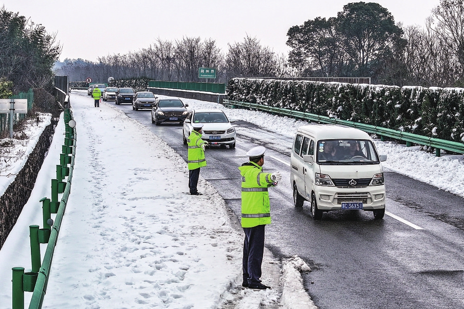 永顺县组织执勤工作人员带领滞留在道路上的群众进入当地政府大院,备好食物,腾出空间设置临时床位供他们休息。周边群众也积极参与,主动打开家门,将滞留人员接到家中用餐和留宿。凤凰县动员千名志愿者走上街道,破冰除雪、清扫路面、疏堵保畅、输送物资,为民众安全出行提供帮助。