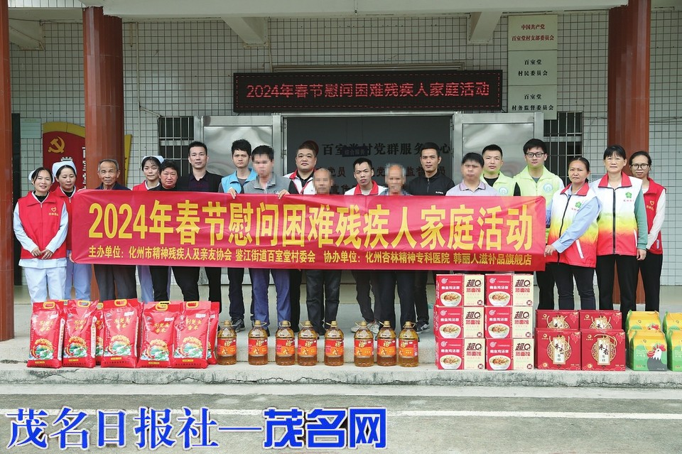 茂名晚报讯记者柯泽彪通讯员陈珏 2月4日,化州市精神残疾人及亲友协会会同鉴江街道社区卫生服务中心、化州杏林精神专科医院组成慰问组,来到鉴江街道百室堂村委会慰问困难残疾人家庭。