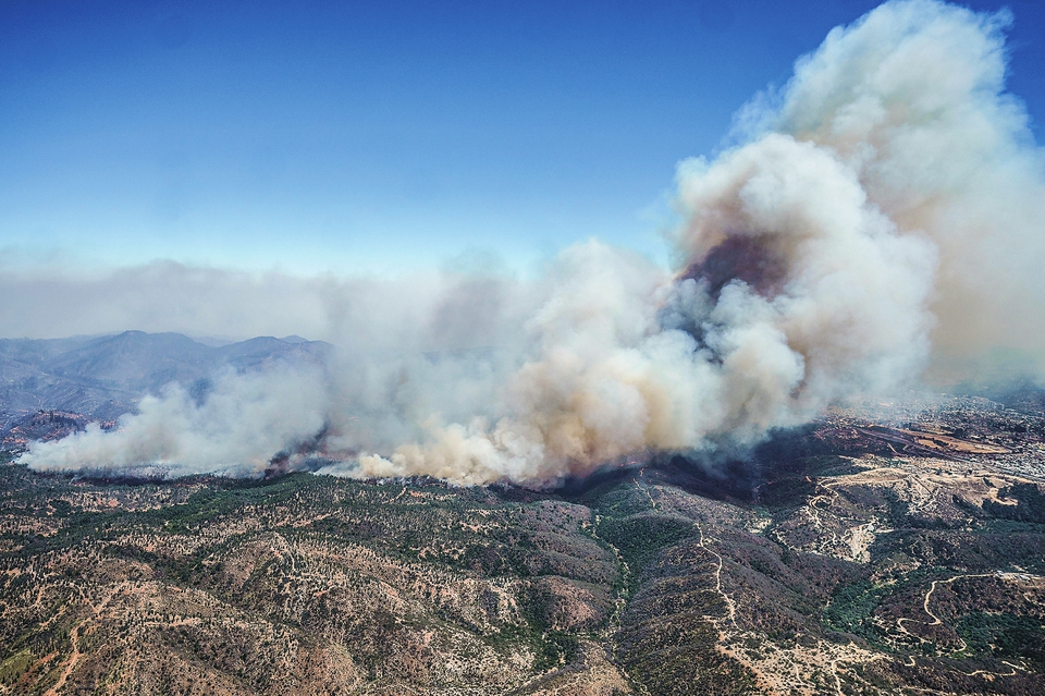 这是2月3日从直升机上拍摄的智利瓦尔帕莱索大区森林火灾情况。新华社发(智利总统府供图)