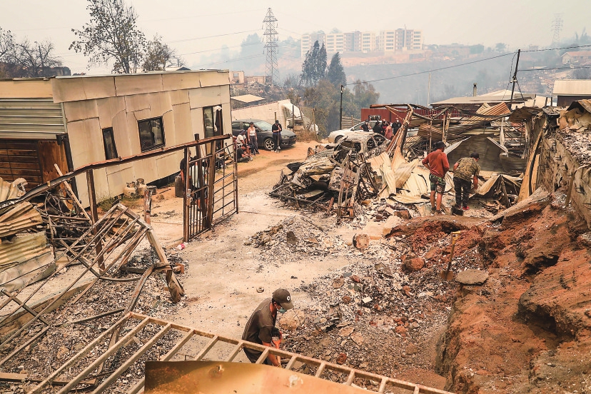 2月3日,在智利瓦尔帕莱索大区比尼亚德尔马市,当地民众清理在森林火灾中烧毁的房屋。新华社发