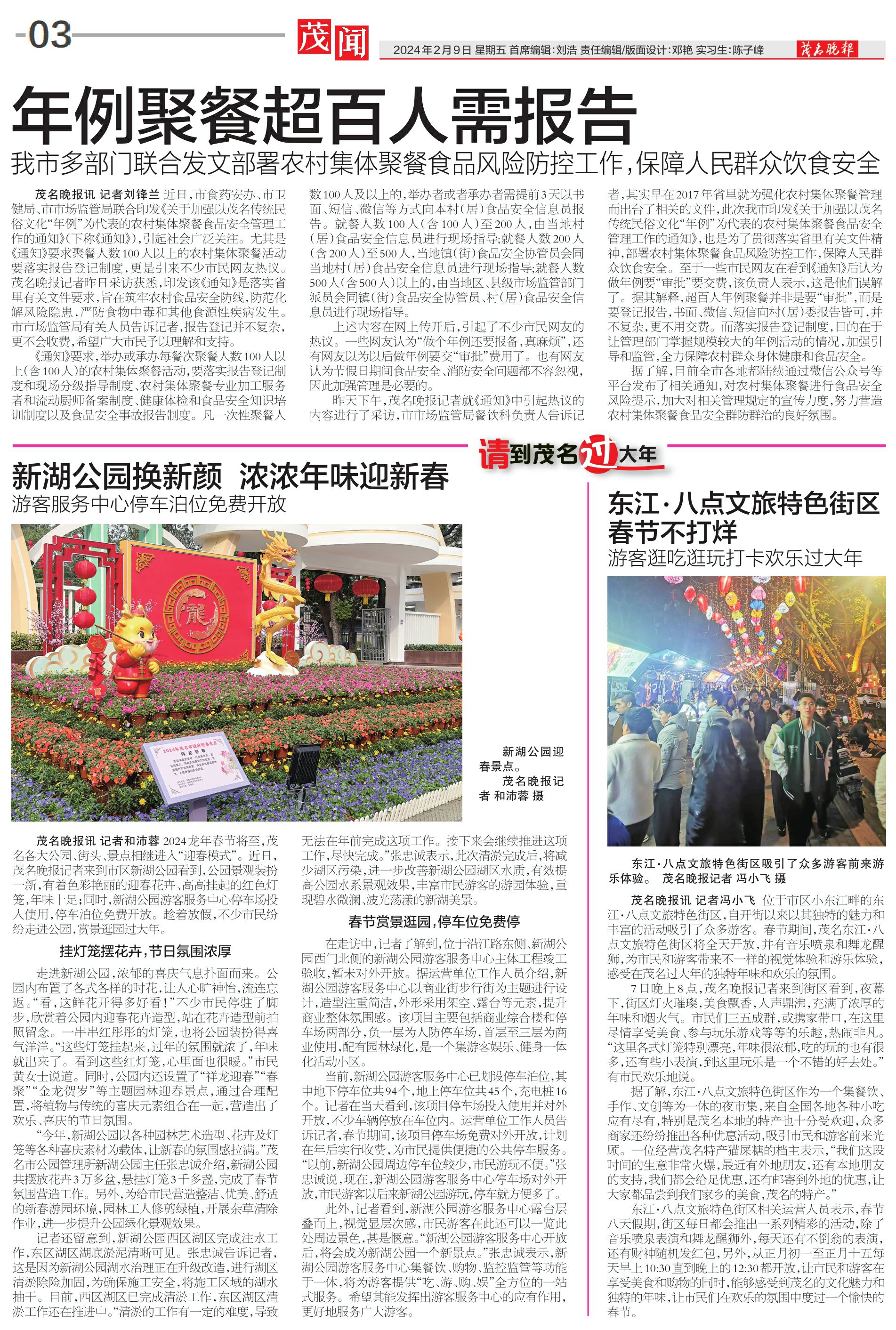 茂名晚报讯记者刘锋兰近日,市食药安办、市卫健局、市市场监管局联合印发《关于加强以茂名传统民俗文化“年例”为代表的农村集体聚餐食品安全管理工作的通知》(下称《通知》),引起社会广泛关注。尤其是《通知》要求聚餐人数100人以上的农村集体聚餐活动要落实报告登记制度,更是引来不少市民网友热议。茂名晚报记者昨日采访获悉,印发该《通知》是落实省里有关文件要求,旨在筑牢农村食品安全防线,防范化解风险隐患,严防食物中毒和其他食源性疾病发生。市市场监管局有关人员告诉记者,报告登记并不复杂,更不会收费,希望广大市民予以理解和支持。