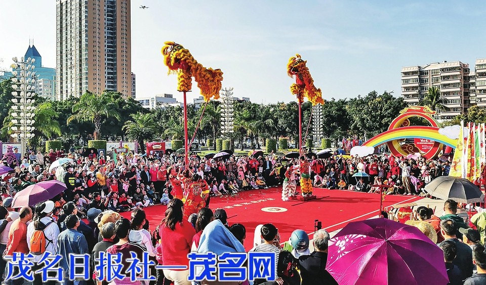 精彩的醒狮贺岁表演吸引众多市民前来观赏。 茂名日报社全媒体记者岑稳摄