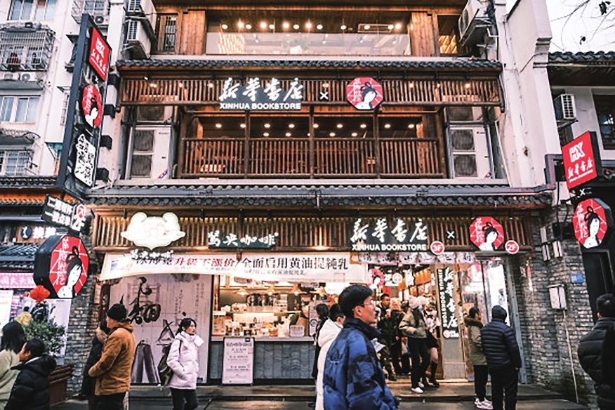 除了传统文化场馆,一些跨界交流也让人耳目一新。在长沙太平老街,湖南省新华书店与新锐茶饮品牌茶颜悦色的“翻书阅岭”联名店里人头攒动。市民和游客们争相进店,在“书香”与“茶香”中惬意品茶、读书。