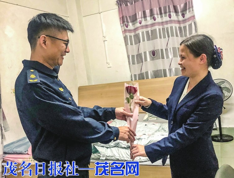 今年春运期间因班次没对上,夫妻二人哪怕同住一间宿舍也很少碰头。2月14日情人节,邓君龙难得有机会遇上下班后的蔡云,于是拿出早已准备好的玫瑰花亲自送予她。