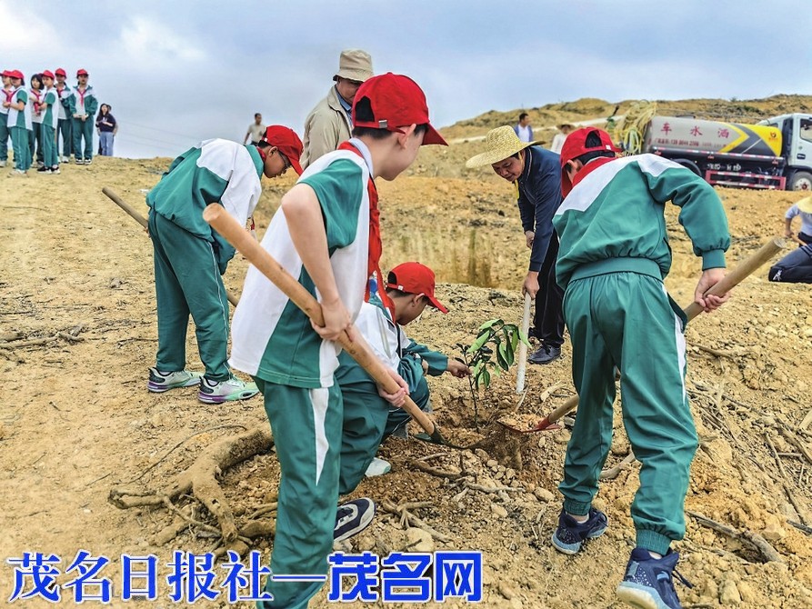 师生代表与党员群众一起开展“年例来种树,绿美新 化 州 ”活动。 茂名日报社全媒体记者黎雄摄