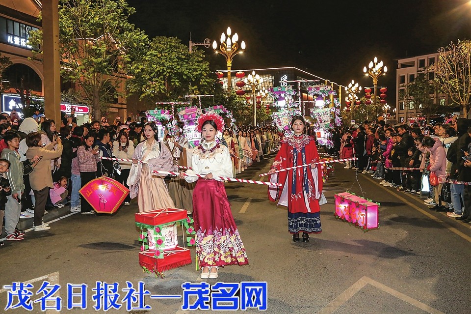 窦州里国潮汉服花灯巡游。茂名日报社全媒体记者李颜东摄