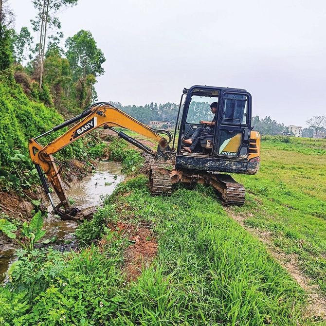 疏通清淤沟渠。茂名日报社全媒体记 者 黎雄摄