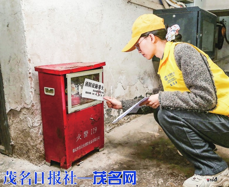 志愿者巡查小区消防设施。茂名日报社全媒体记者李颜东摄