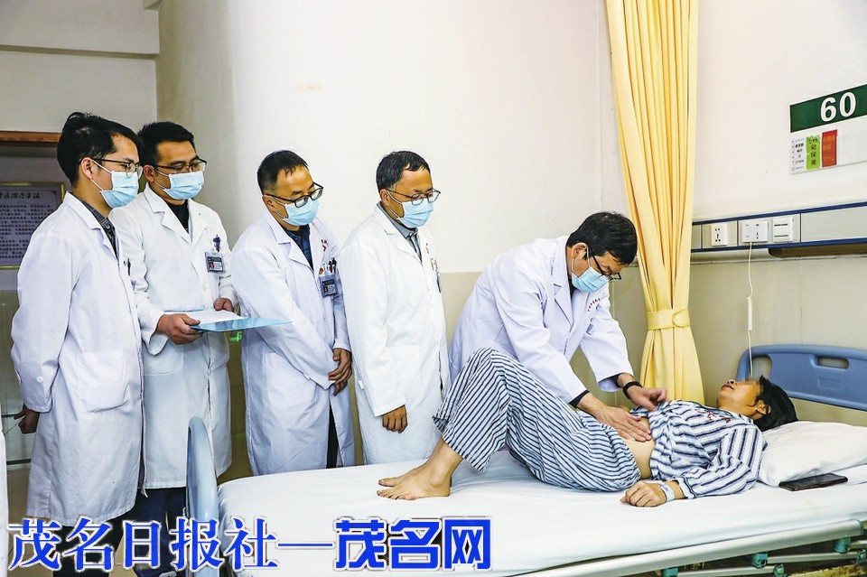 “这里疼不疼?”当天上午,广东省中医院泌尿外科大科主任、学科带头人,主任中医师、教授,广东省中医院名中医,硕士研究生导师王树声带领团队到病房查房,亲切询问了病人病情。在查房结束后,广东省中医院泌尿外科专家团队与广州中医药大学茂名医院(茂名市中医院)医生们举行了研讨会,根据病人的病情进行学术交流,进一步拓展了广州中医药大学茂名医院(茂名市中医院)大外科医务人员的临床思维,提高了诊疗水平,为专业、高效的医疗服务提供了学术支撑。