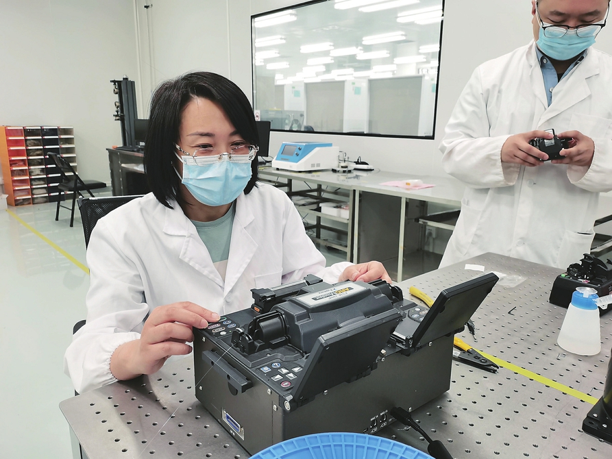 衣永青正在对光纤进行测试。新华社发