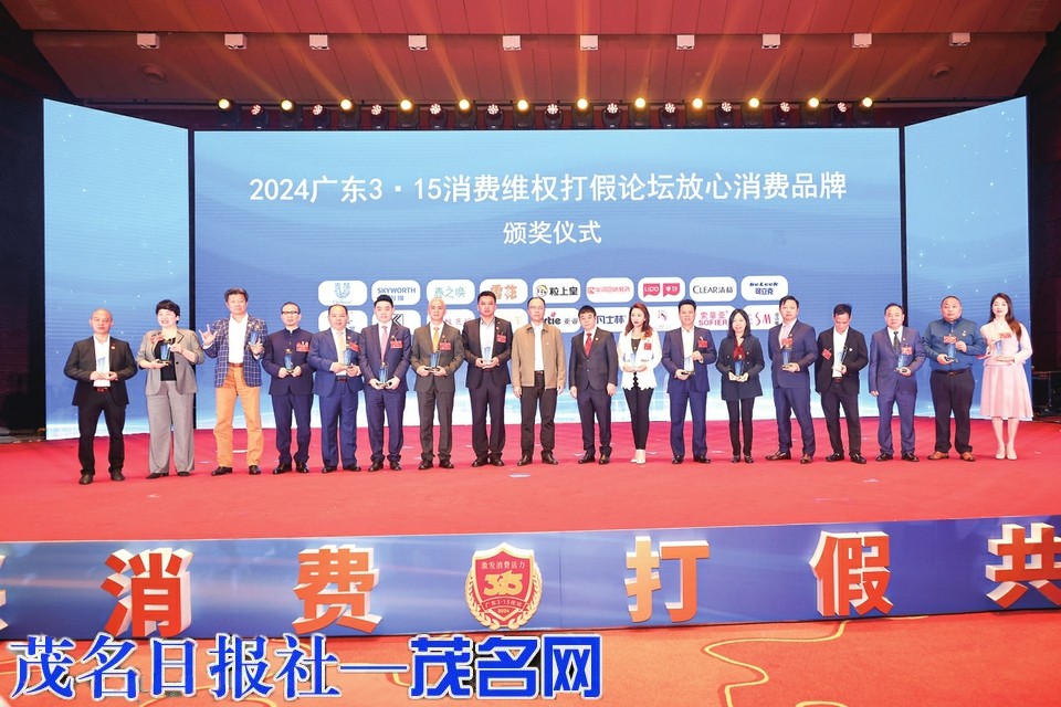 海龙阁饼业(右七)荣获“2024广东放心消费品牌”。茂名日报社全媒体记者康乾摄