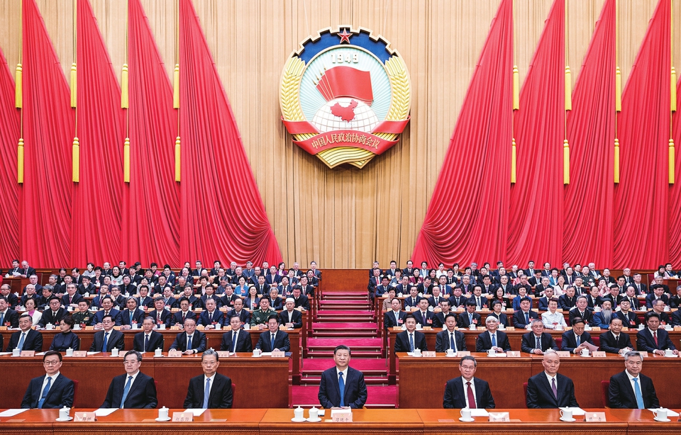 3月10日,中国人民政治协商会议第十四届全国委员会第二次会议在北京人民大会堂举行闭幕会。全国政协主席王沪宁主持闭幕会并讲话。 新华社记者鞠鹏摄